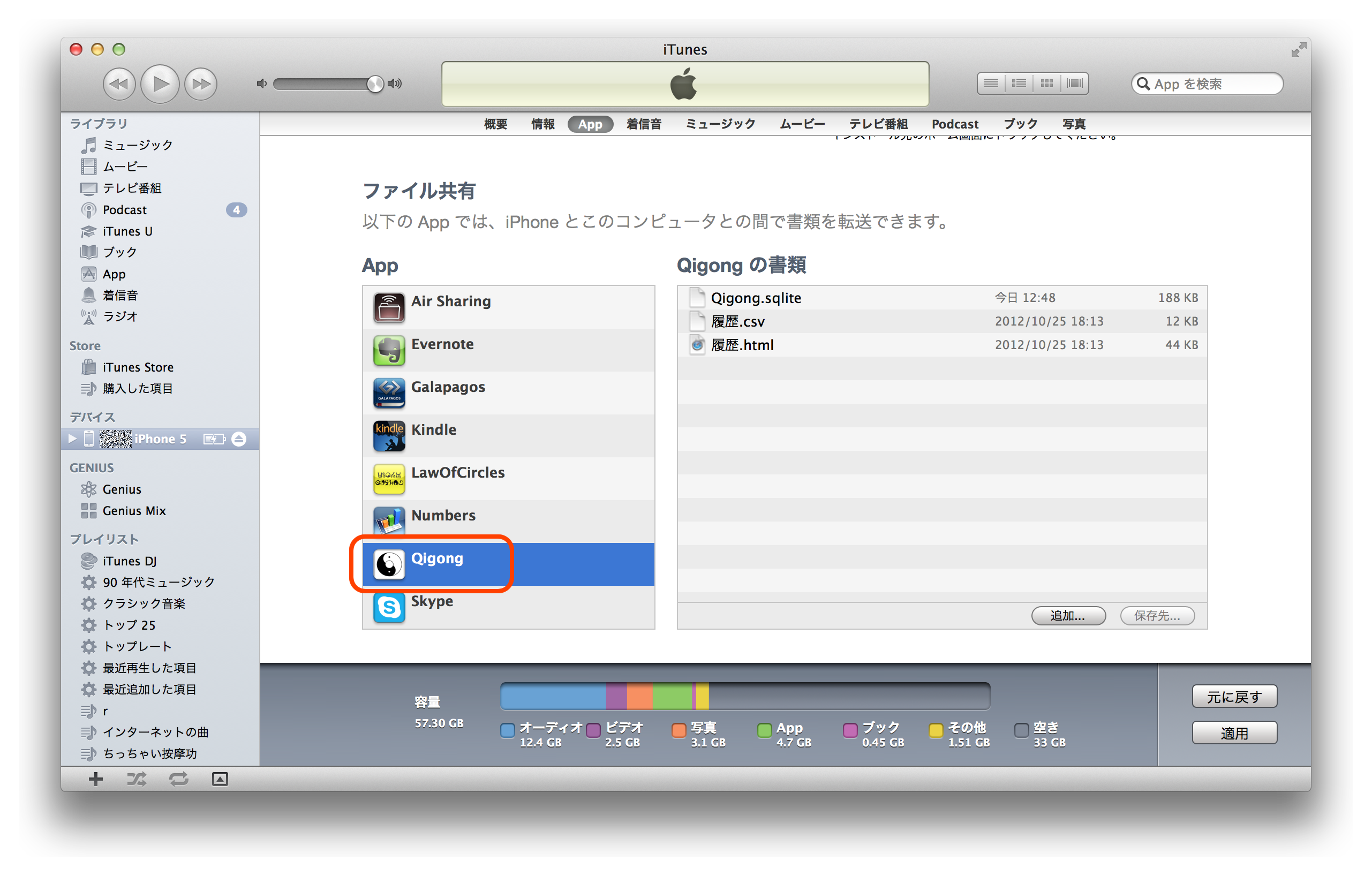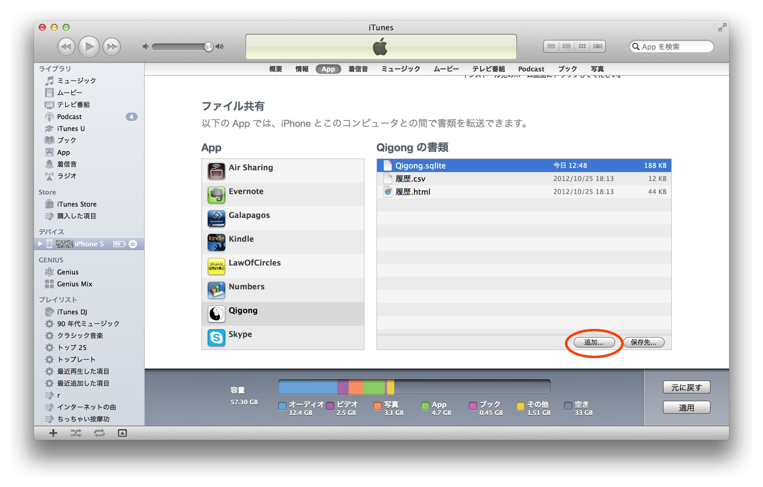 1.4. 「ファイル共有」が確認出来るところまで下にスクロールし、「Qigong」を選択します。